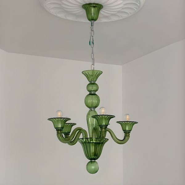 Venetian-Style Colored Glass Chandelier, 5-8 Light Hand-Blown Fixture for Dining & Bedroom - 110V-120V Green 5