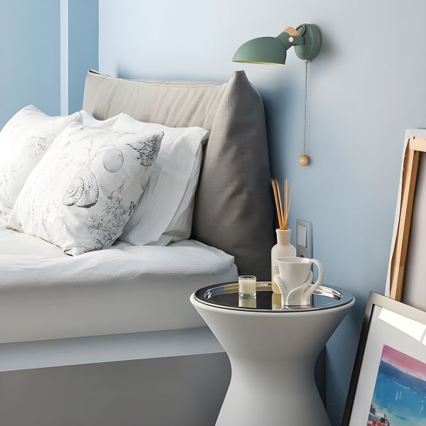 Nordic Minimalist Wall Sconce, 180° Adjustable Reading Light with Wood Accents & Pull Chain Switch - 110V-120V Green