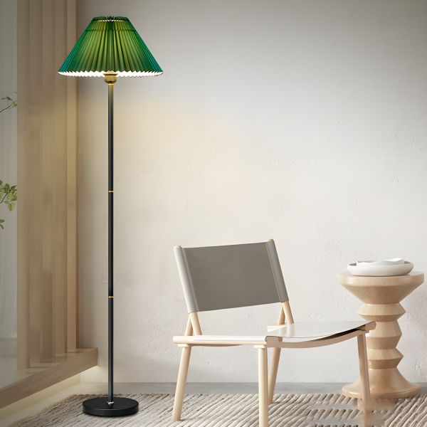 Mid-Century Pleated Floor Lamp, Fabric Shade Standing Light with Weighted Base for Living Room Reading - 110V-120V Green