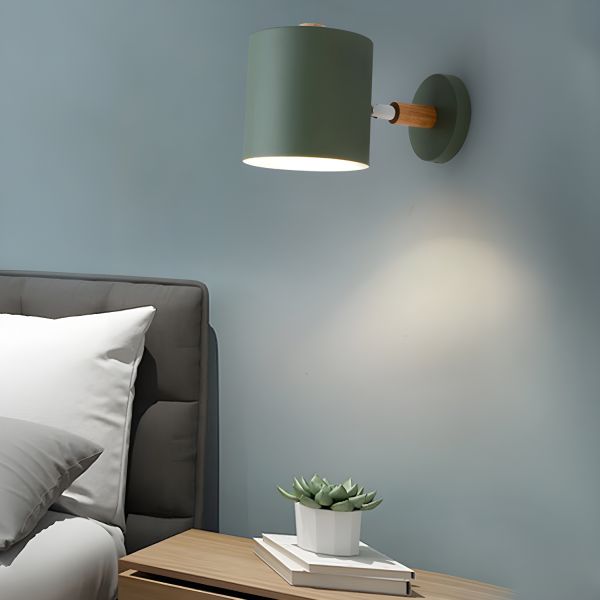 Scandinavian Matte Metal Wall Sconce with Natural Wood Accent for Bedroom Reading - 110V-120V Green
