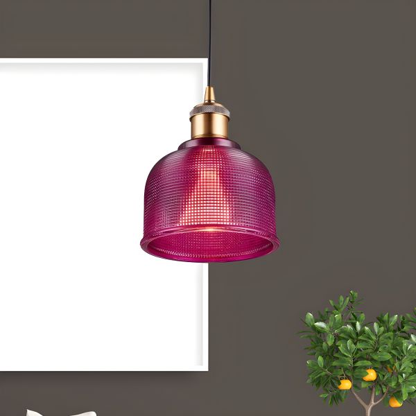 Mid-Century Fluted Glass Globe Pendant Light for Ambient Dining & Kitchen Lighting - 110V-120V Purple 6"