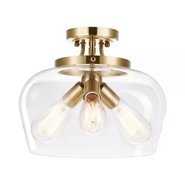 Transitional 3-Light Semi Flush Mount Ceiling Fixture with Clear Glass Shade for Kitchen Entryway - Gold 110V-120V