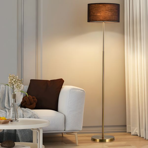 Minimalist Metal Floor Lamp with Fabric Shade and Weighted Base - Gold 110V-120V Flaxen