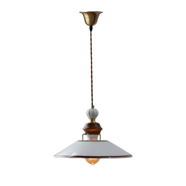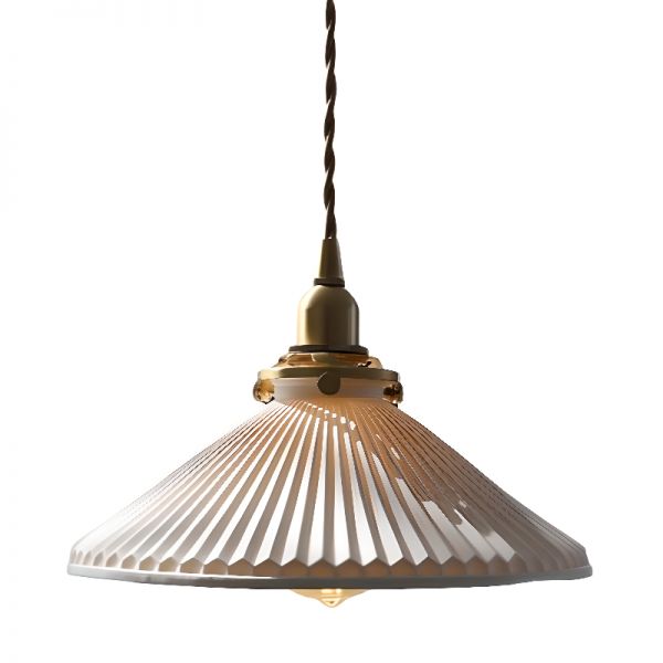 Ceramic Ceiling Lamp with Tether Mounting, Geometric Fixture, White Shade for Residential Use, Ultra Modern Style, Adjustable Suspension Length, 110V-120V, 9"