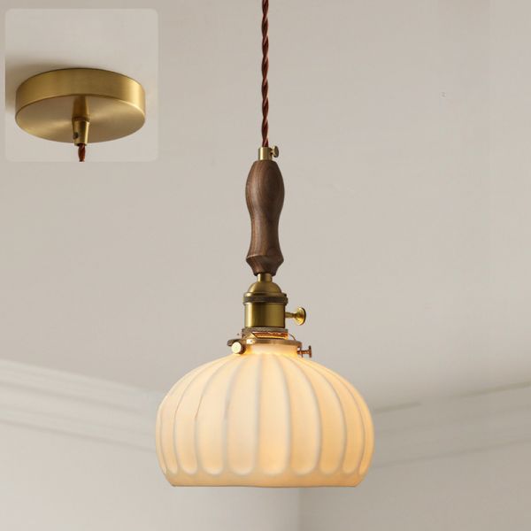 Ceramics Pendant Lamp with String Mounting, Regular Fixture, White Shade, 1 Light, and Customizable Hanging Length, 110V-120V, Pumpkin