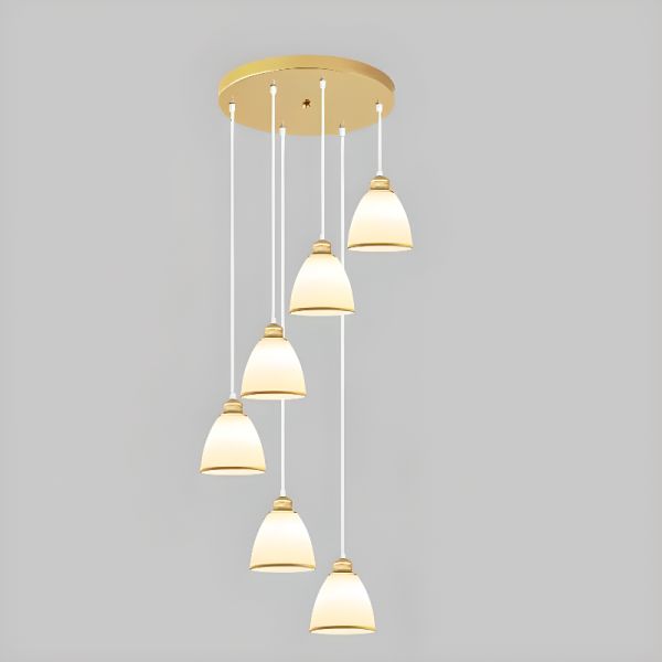 6 Lights Opalescent Glass Pendant Lamp, Angular White Thread Vitreous Shade for Residential Use, Gold, 110V-120V