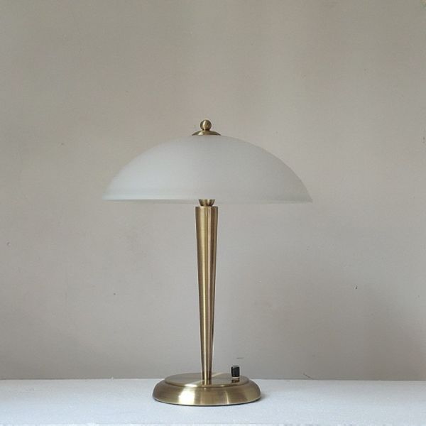 Standard Table Lamp, 17" High, Aureate Color, Vitreous Shade, Downward Shade, Socket-connected, Minimalist Style for the Parlor, White, 110V-120V