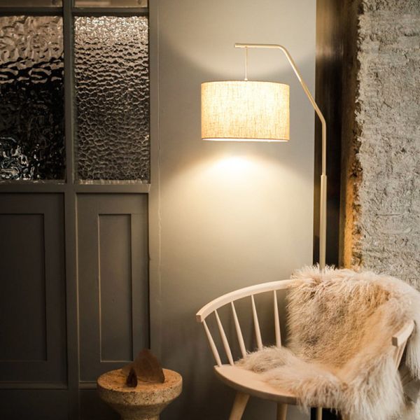Contemporary Arched Floor Lamp with Textured Fabric Shade and Weighted Metal Base - Gold 110V-120V Adjustable Height