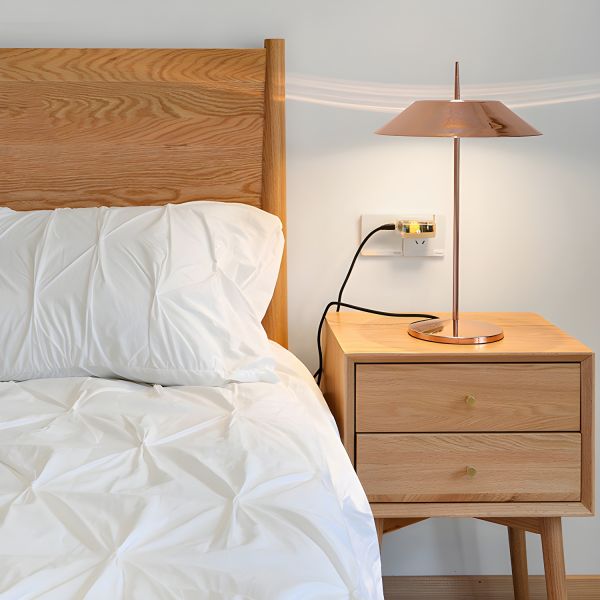 Contemporary Minimalist Metal LED Table Lamp, Ambient Bedside Nightstand Light - Rose Gold 110V-120V