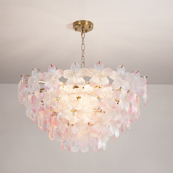 Romantic Botanical Glass Flower Chandelier, Artistic Floral Pendant Light - Pink 110V-120V 19"