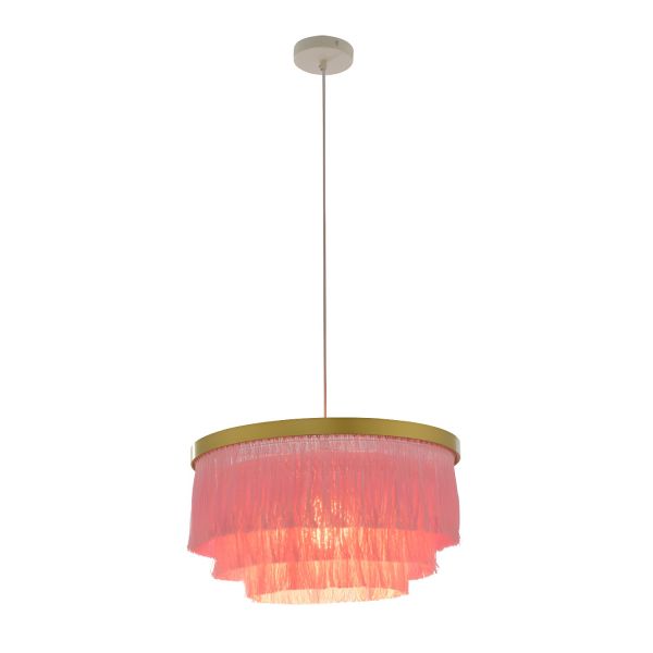 Boho Glam Tiered Tassel Pendant Light, 3-Layer Fringe Drum Chandelier with Gold Accent for Bedroom or Nursery - 110V-120V Gold Pink