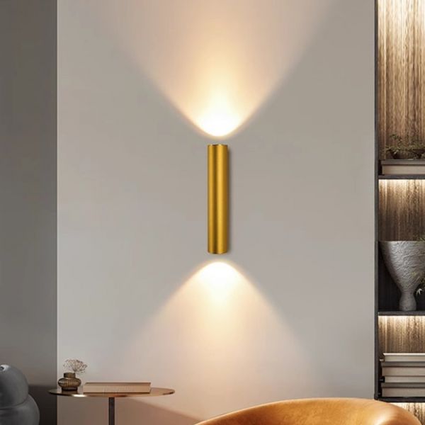 Minimalist Aluminum Cylinder Wall Sconce, Dual-Directional LED Fixture for Hallway and Staircase Accent Lighting - Gold 110V-120V 8"