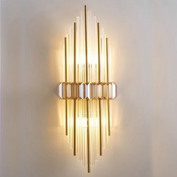 Art Deco Crystal Wall Sconce, Faceted Prism Vanity Light for Living Room Hallway - Gold 110V-120V 18"