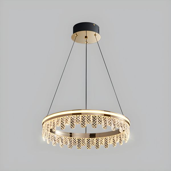 Contemporary LED Halo Chandelier, Circular Ring Pendant Light with Textured Crystal Prisms - 110V-120V Gold 16"