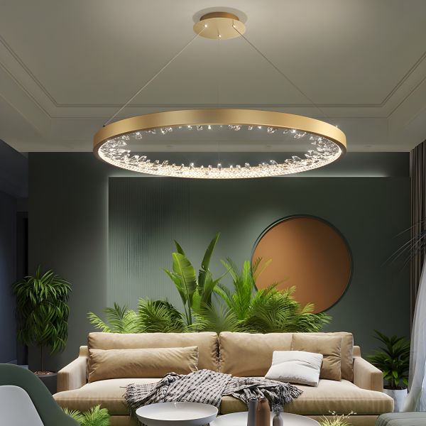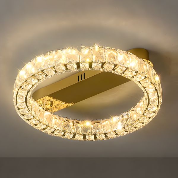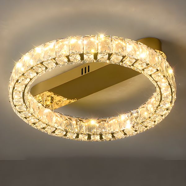Luxe Crystal Ring Chandelier, LED Flush Mount Ceiling Light, Gold Finish for Living Room - 110V-120V 16"