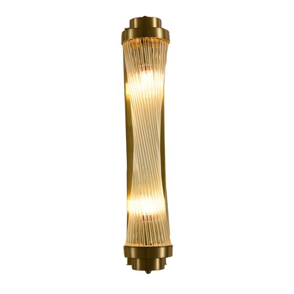 Art Deco Crystal Wall Sconce, Spiral Glass Rod Vanity Light with Anti-Rust Finish - Gold 16" 110V-120V