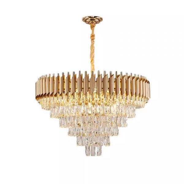 Luxe Contemporary Gold Crystal Chandelier, Round Tiered Pendant Light Fixture for High Ceilings - 110V-120V 19.5"