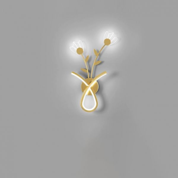 Contemporary Artistic LED Wall Sconce, Creative Floral Metal Lamp for Bedroom Hallway - 110V-120V Gold White Light Left