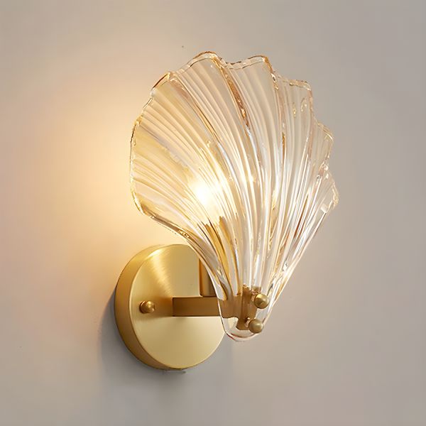 Art Deco Seashell Wall Sconce, H65 Brass & Ribbed Glass Vanity Light Fixture - 110V-120V
