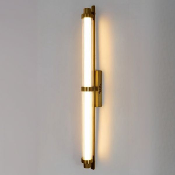 Art Deco Gold Wall Sconce, Fluted Crystal Glass Rod Vanity Light with Brushed Brass Finish - 110V-120V