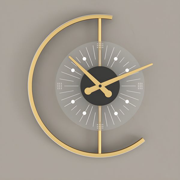 Contemporary Gold LED Wall Sconce Clock, Creative Crescent Moon Design with Silent Movement, Ambient Acrylic Night Light for Hallway or Bedside - Warm Light 110V-120V