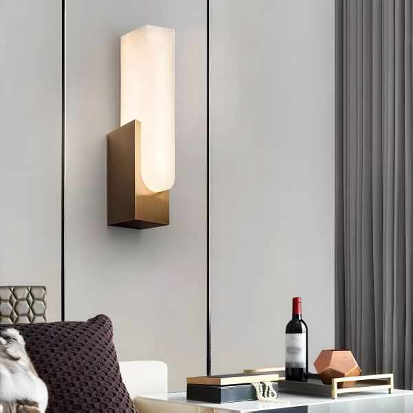 Luxe Brushed Brass Wall Sconce with Natural Alabaster Shade for Hallway or Bedside - 110V-120V