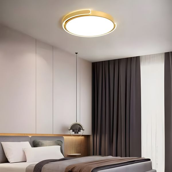 Minimalist LED Flush Mount Light, Geometric Halo Ceiling Fixture with Anti-Glare Acrylic Shade - Gold 110V-120V 16" Warm Light