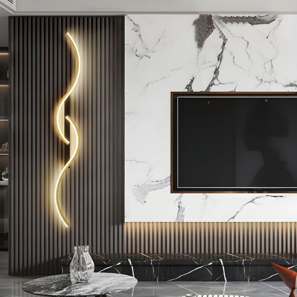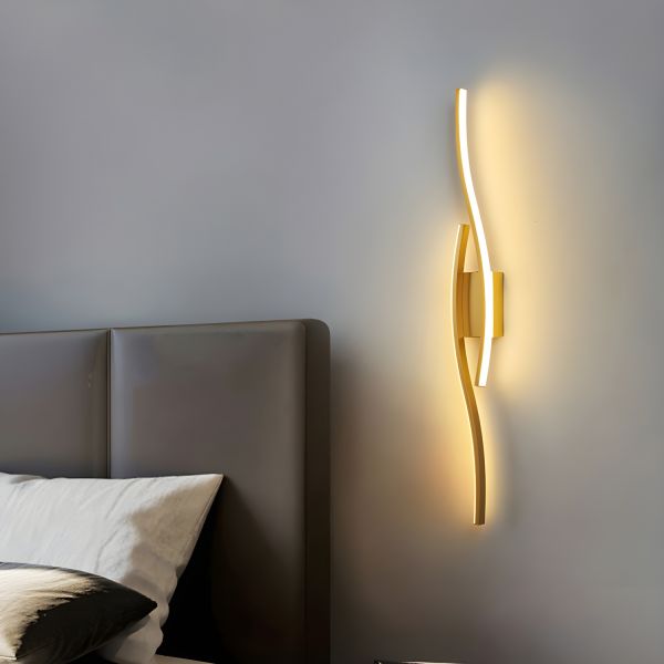 Contemporary LED Wall Sconce, Linear Wave Art Light Fixture for Hallway & Bedroom Ambiance - 110V-120V Gold Warm Light