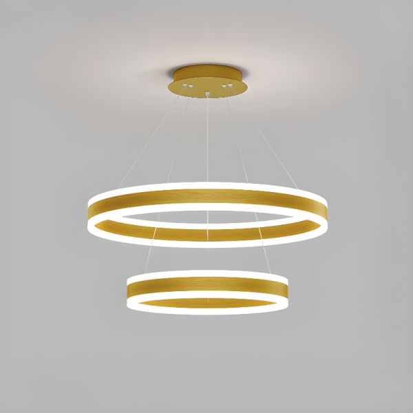 Contemporary Geometric LED Ring Chandelier, Adjustable Aluminum Pendant Light for High Ceilings - Gold 110V-120V Warm Light 12"+16" (30cm+40cm)