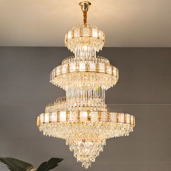 Luxury French Empire Crystal Chandelier, Gold Tiered Pendant Light with Adjustable Chain - 110V-120V 71"