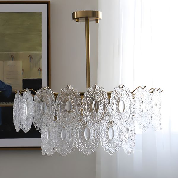 Art Deco Brass Chandelier with Textured Oval Glass Drops and Multi-Tiered Design - 110V-120V 2 Tiers 19.5"