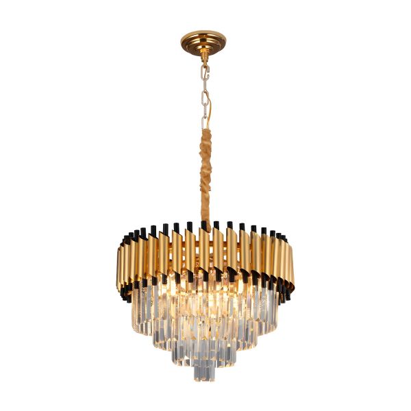 Luxe Contemporary Gold Crystal Chandelier, Round Tiered Pendant Light Fixture for High Ceilings - 110V-120V 19.5"