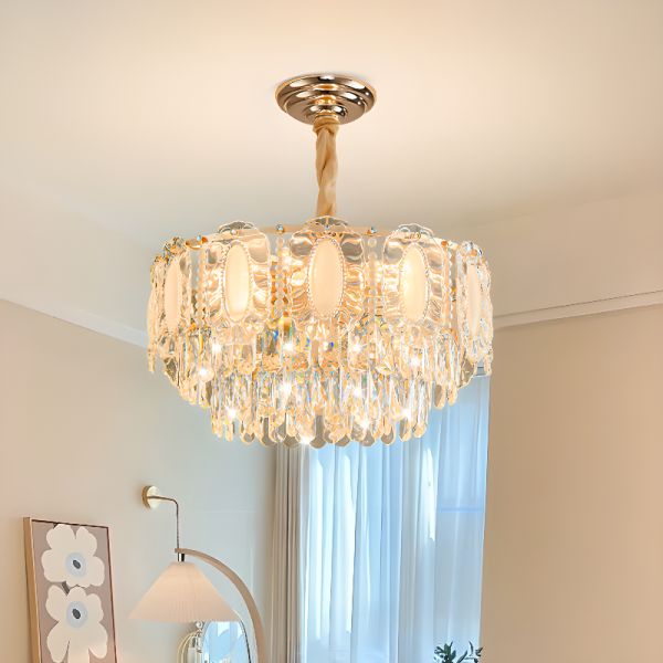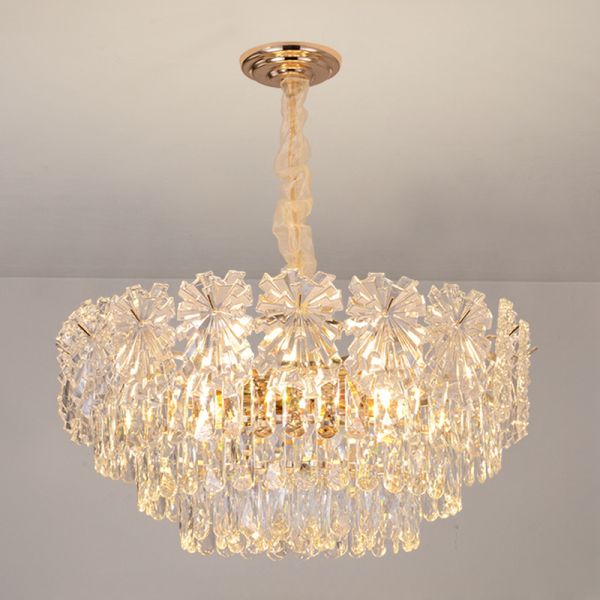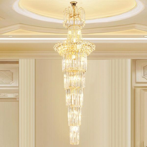 Luxe Tiered Crystal Chandelier, Gold Raindrop Light Fixture for High Ceilings - 110V-120V 22"