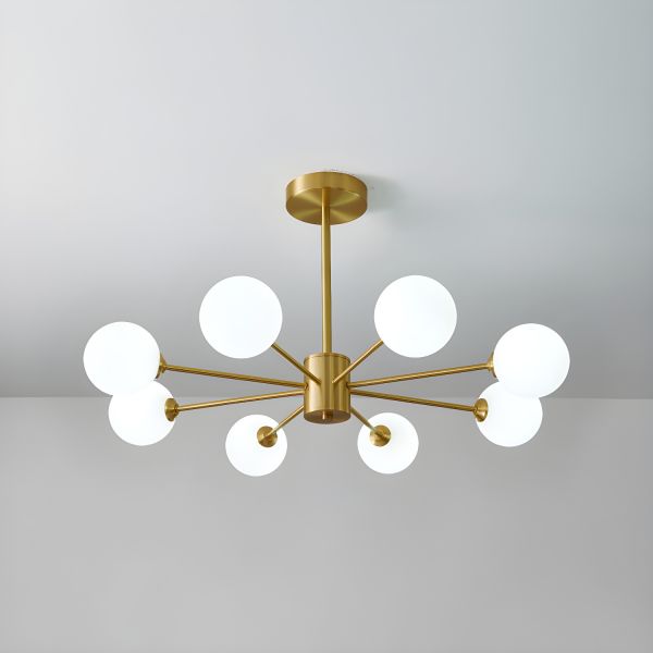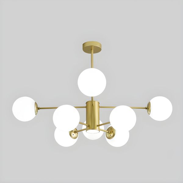 Mid-Century Modern Sputnik Chandelier with Opal Glass Globes for Ambient Home Lighting - 110V-120V Gold 12