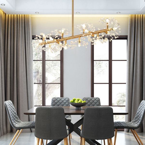 Contemporary Crystal Firework Linear Chandelier Dandelion Island Pendant Lighting - 110V-120V Gold 9
