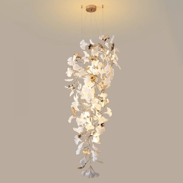 Luxe Organic Branch Chandelier, Gold Pendant Light with Textured Glass Leaves for Dining Room - 110V-120V 31.5"