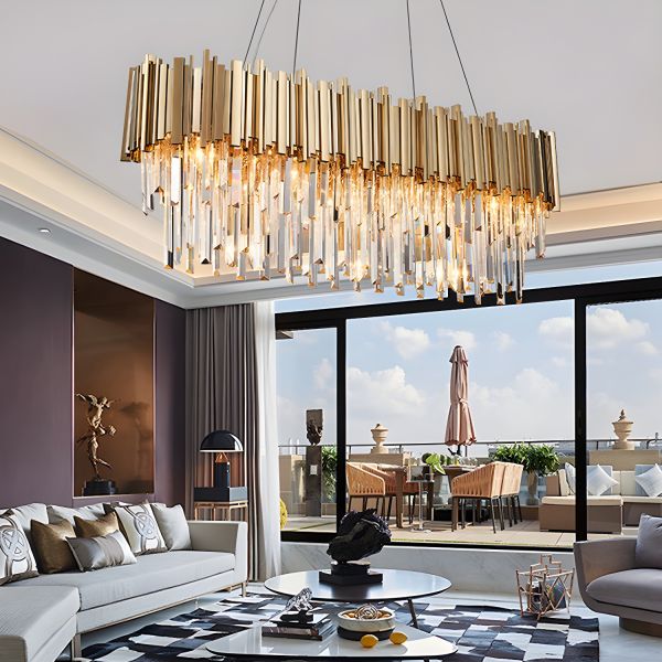 Crystal Postmodern Chandelier Light Fixture Metal Ceiling Lamp for Living Room Hotels - 110V-120V Gold 31.5"