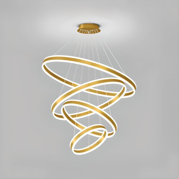 Contemporary Geometric LED Ring Chandelier, Adjustable Aluminum Pendant Light for High Ceilings - Gold 110V-120V White Light 12"+16"+23.5"+31.5"