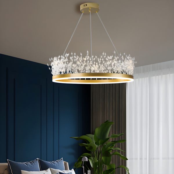 Luxe Crystal Branch Chandelier, LED Halo Pendant Light with Adjustable Cables - 110V-120V Gold 16"