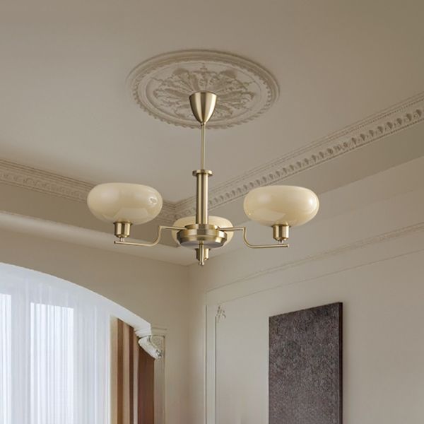Elegant Traditional Gold Chandelier with White Glass Bowl Shade and Adjustable Hanging Length - 110V-120V 3
