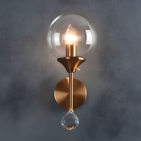 Glass Brass Wall Light in Modern Creative Style Copper Globe Hanging Wall Lamp for Bedroom - Clear 110V-120V