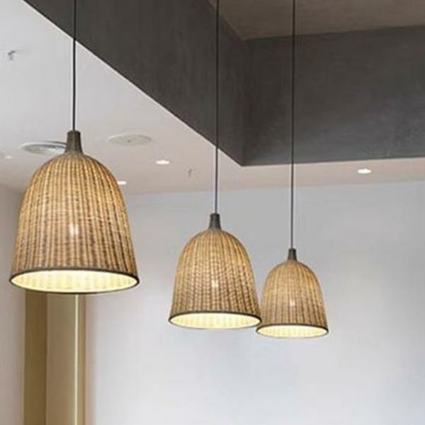 Boho Coastal Handwoven Rattan Pendant Light, Natural Wicker Hanging Fixture for Dining Room - 110V-120V 10" Dome