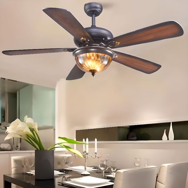 Industrial Glam Ceiling Fan with Light, Black Chandelier Fan with 3-Color LED & Crystal Shade - 110V-120V Dome