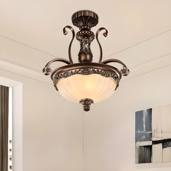 Vintage Traditional Bronze Chandelier with Frosted Glass Shades and Ornate Scroll Details - 3 110V-120V Dome