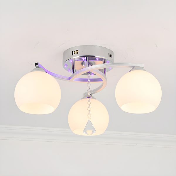 Contemporary 3-Light Semi Flush Mount Fixture with Chrome Finish and Frosted Shades - Dome 110V-120V with inner integrated light