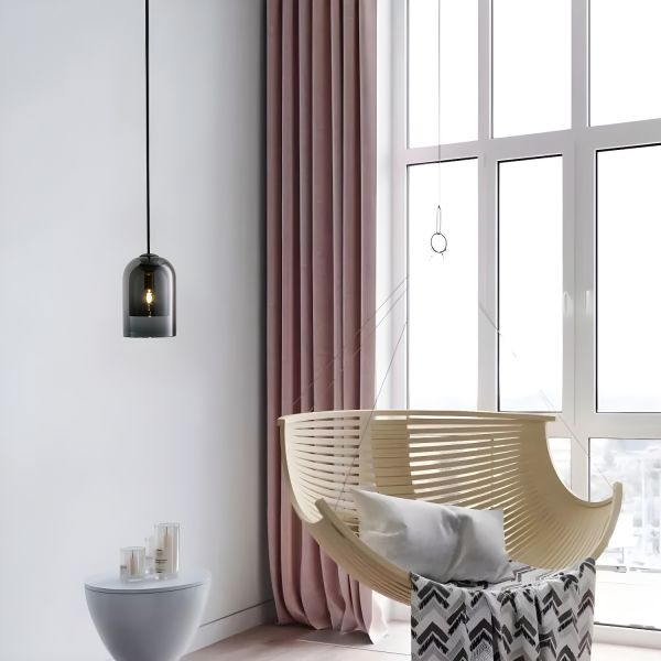 Minimalist Modern Bell Glass Pendant Light, E14 Fixture for Kitchen & Dining Room - 110V-120V Smoke Gray