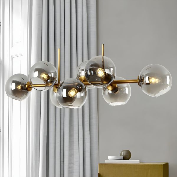 Mid-Century Linear Globe Chandelier, 8-Light Smoked Glass Suspension Fixture - 110V-120V Gold