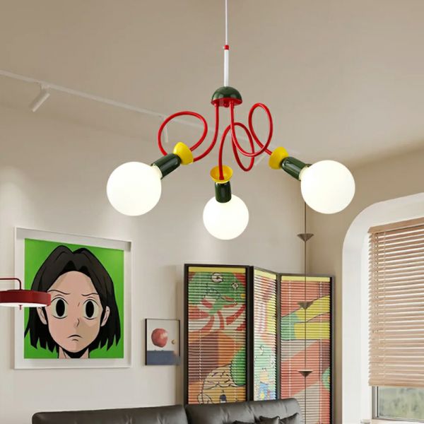 Memphis Style Postmodern Chandelier, Colorful Metal Pendant Light with Curved Arms, Adjustable Hanging Fixture for Kids Room or Creative Studio - 110V-120V 3