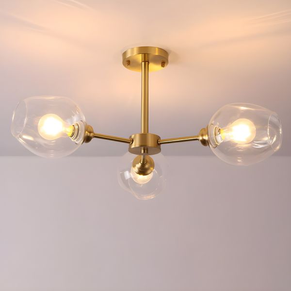 Mid-Century Sputnik Semi Flush Mount Ceiling Light, Gold Branch Fixture with Glass Globes - Clear 110V-120V 3