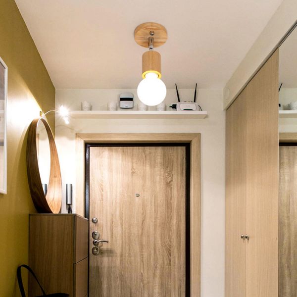 Scandinavian Natural Wood Directional Spotlight, Adjustable Ceiling Flush Mount - Wood Color 110V-120V 1